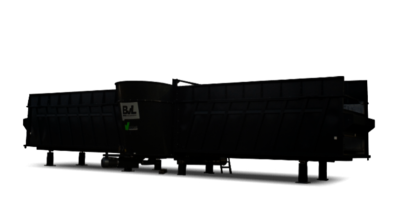 Starke Kombi: Über eine Hydraulikvorrichtung im Abschiebecontainer unseres V-BIO Combi wird das Substrat dem angekoppelten Dosierer zugeführt und das bei geringem Stromverbrauch.